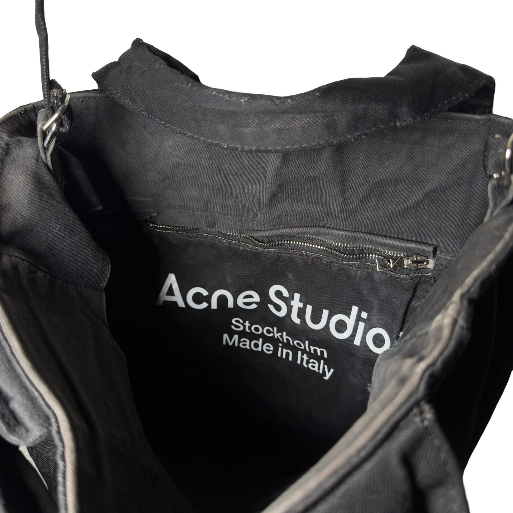 Constructed from a robust, heavy-duty cotton canvas, this Acne Studios bag is a utilitarian essential designed for daily durability. The bag features a minimalist aesthetic with a spacious interior and a subtle, inverted Acne Studios logo print near the base. Equipped with sturdy shoulder straps and a relaxed, slouchy silhouette, it balances the brand's signature Scandinavian functionalism with a rugged, industrial edge.