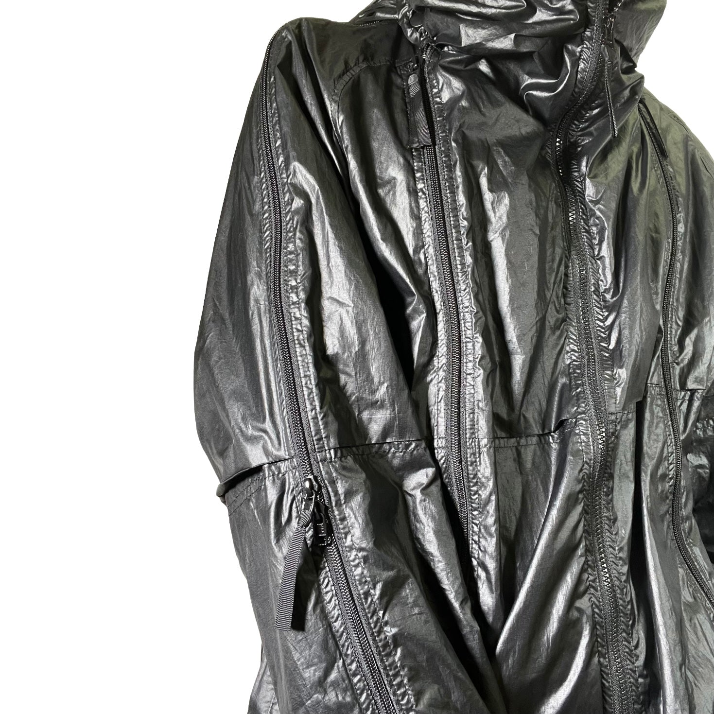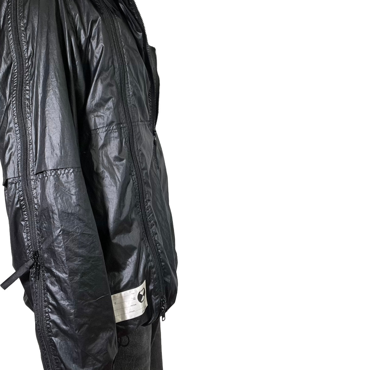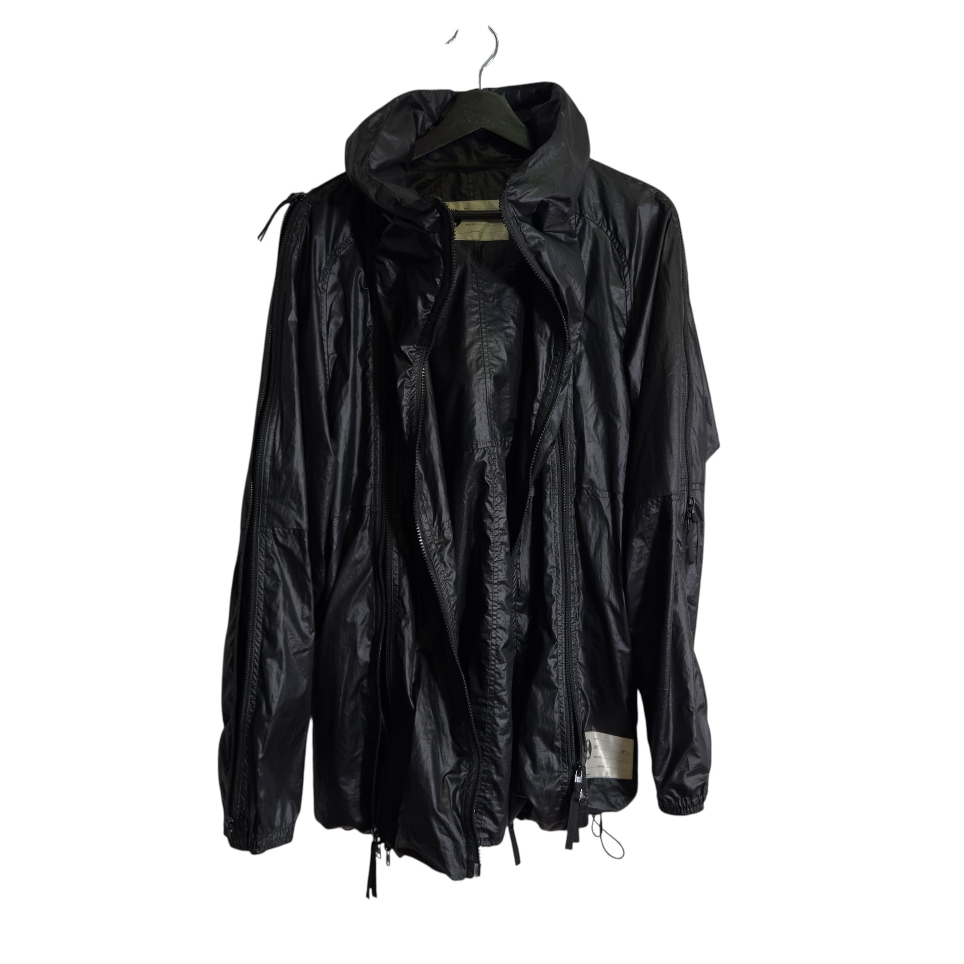 Designed by Kosuke Tsumura, this Final Home Survival Parka is a definitive piece of utilitarian archive fashion. Constructed from a durable, lightweight nylon, the jacket features the brand's iconic multi-zippered design extending across the body and sleeves, originally conceived to be stuffed with newspaper for insulation in extreme conditions. Complete with a high-neck hood, adjustable drawstrings, and a functional aesthetic that merges survivalist practicality with avant-garde streetwear, it stands as a testament to transformative design.