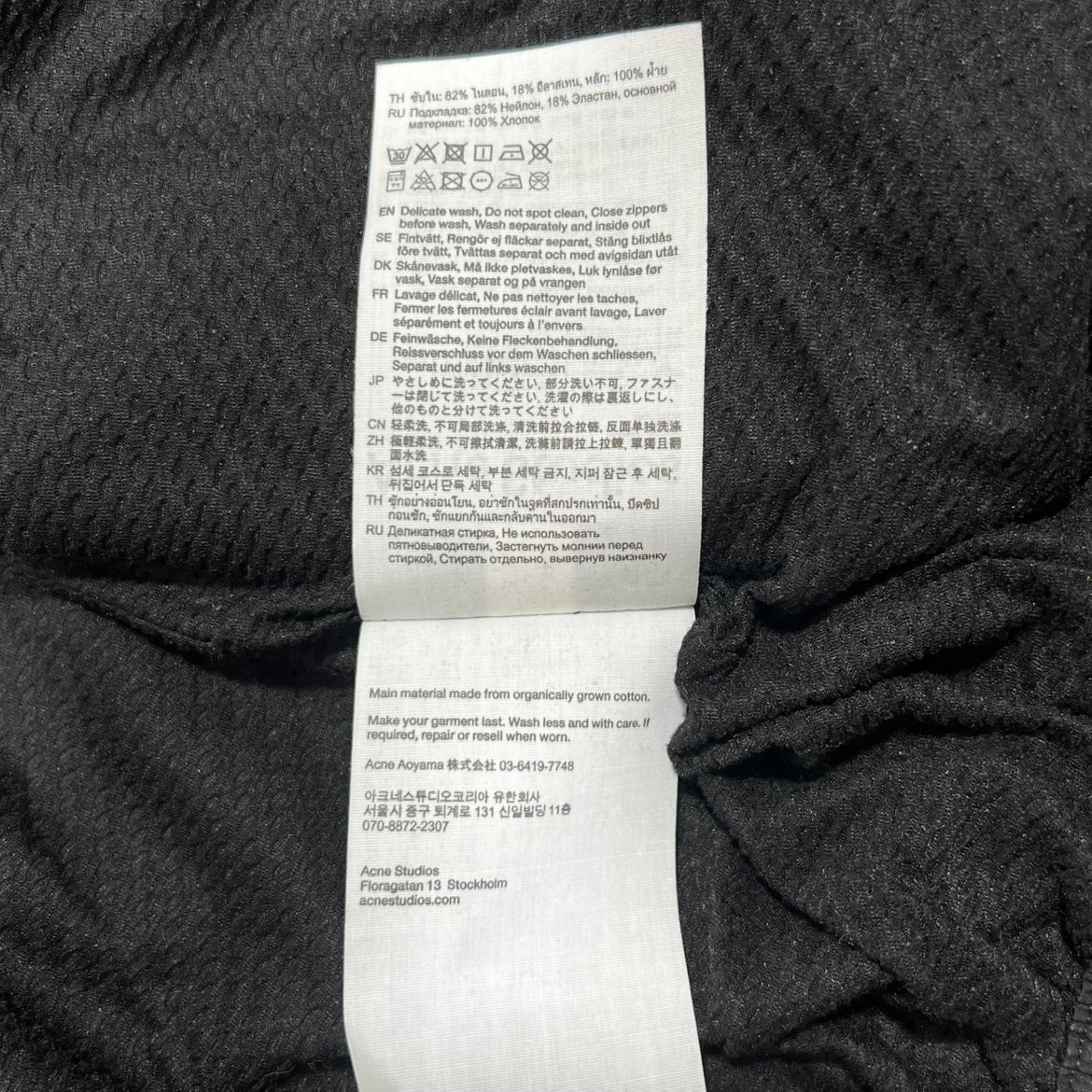 This jacket highlights Acne Studios’ consistent reference to its origins in Stockholm, founded in 1996. Pieces like this often serve as archival nods to the brand’s identity, mixing understated minimalism with bold branding.
