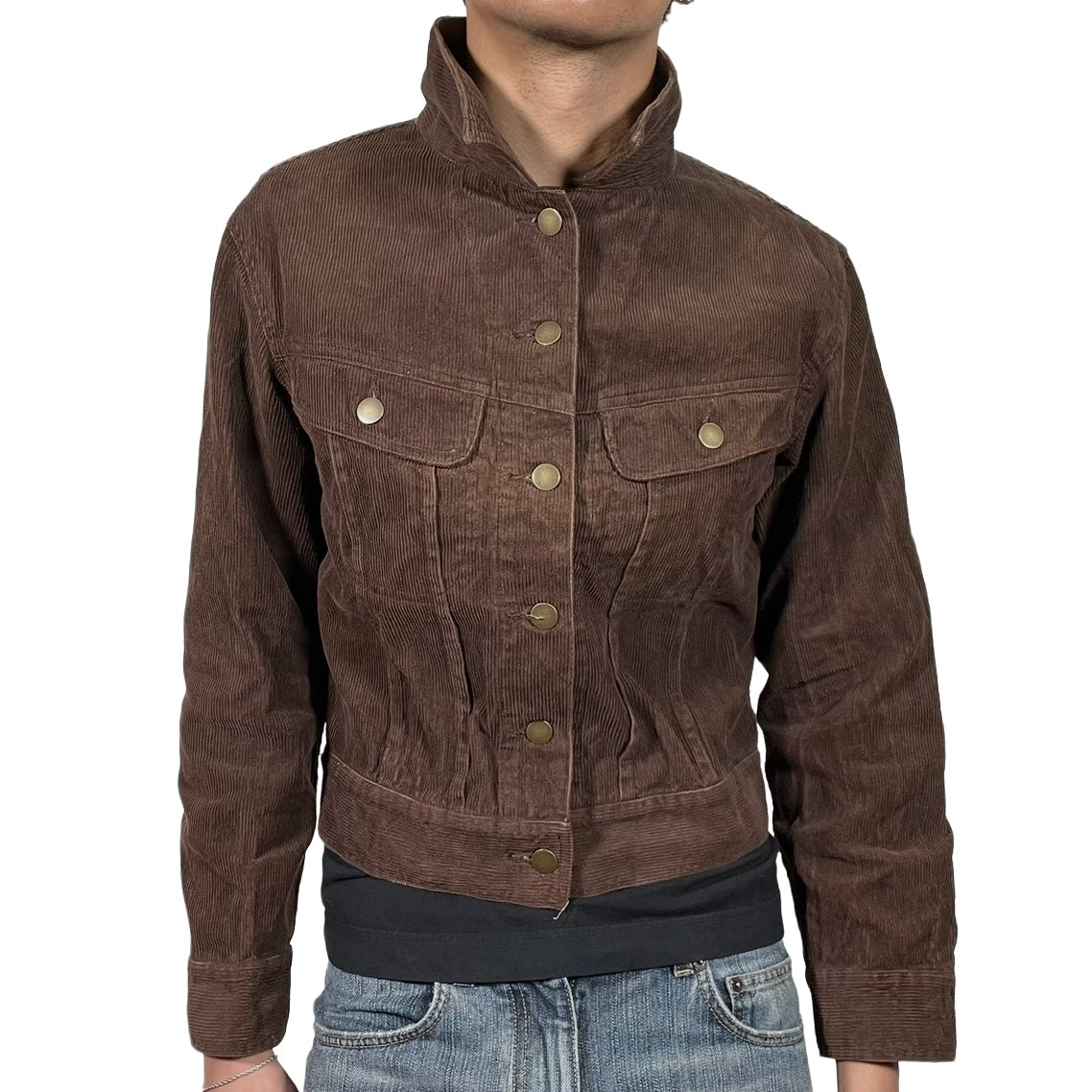 A vintage inspired silhouette drawing from British subculture and racing aesthetics, this jacket is constructed from cotton twill, providing a durable exterior. The design features a pointed collar neck with a button closure and two front flap pockets.