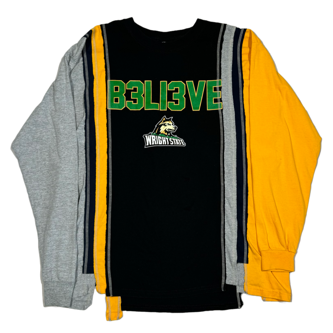 Needles Rebuild takes up-cycled surplus and vintage garments to create one of a kind pieces. The 7 Cut Long Sleeve Tee is sewn as the name implies from 7 up-cycled garments creating a truly unique garment. Made in Japan from 100% cotton.