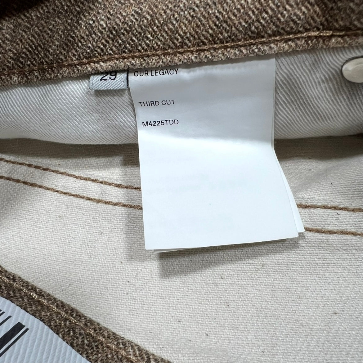 The “Third Cut” is Our Legacy’s wide straight-leg denim silhouette, recognized for its relaxed fit and experimental washes. This digital print finish is part of the brand’s exploration of unconventional textile treatments, giving each pair a unique tonal variation.