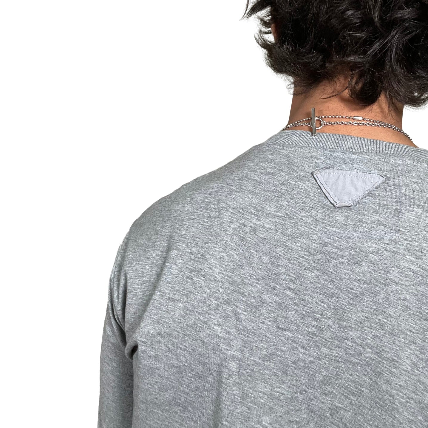 Super soft and thin cotton long sleeve from Prada. Simple design with a sewn on tone-on-tone Prada logo at the neck. The perfect elevated basic.